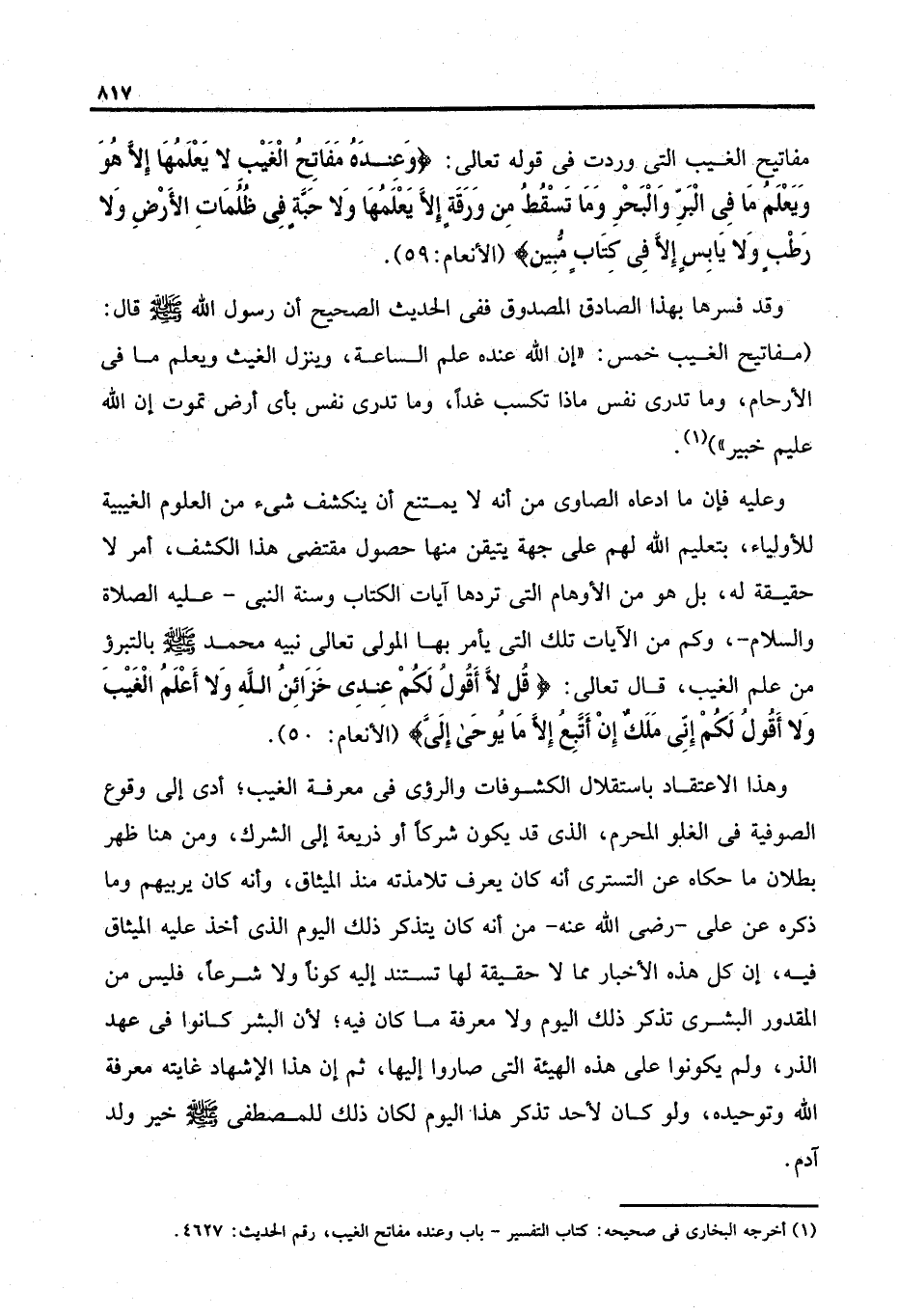 (١) أخرجه البخاري في صحيحه: كتاب التفسير - باب وعنده مفاتح الغيب، رقم الحديث: ٤٦٢٧.