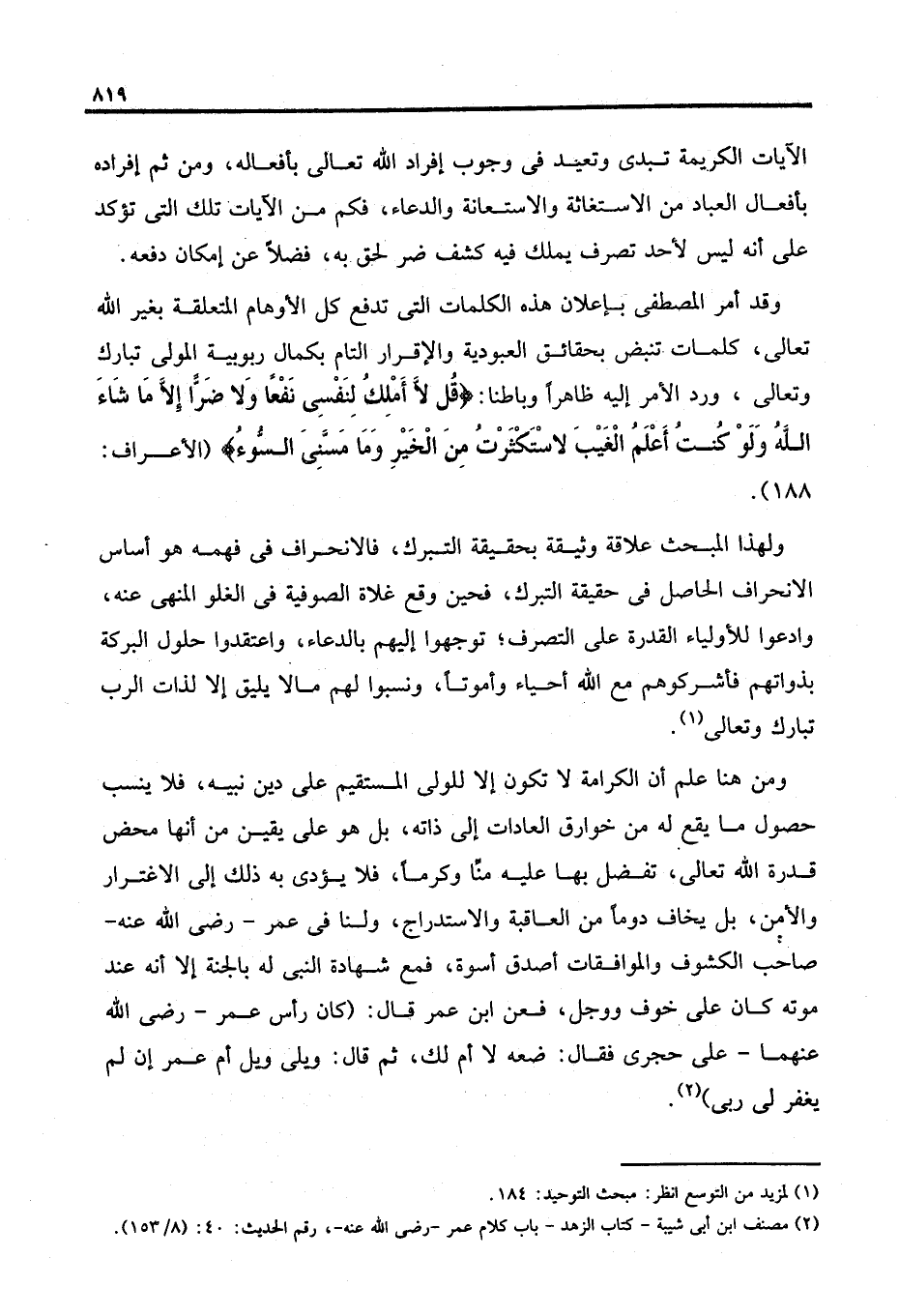 (١) لمزيد من التوسع انظر: مبحث التوحيد: ١٨٤.