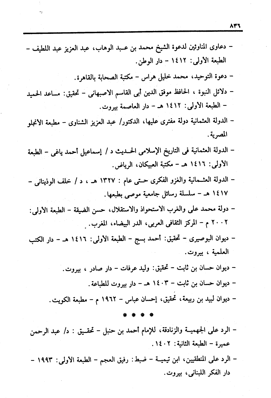 - دعاوى المناوئين لدعوة الشيخ محمد بن عبد الوهاب، عبد العزيز عبد اللطيف - الطبعة الأولى: ١٤١٢ - دار الوطن.