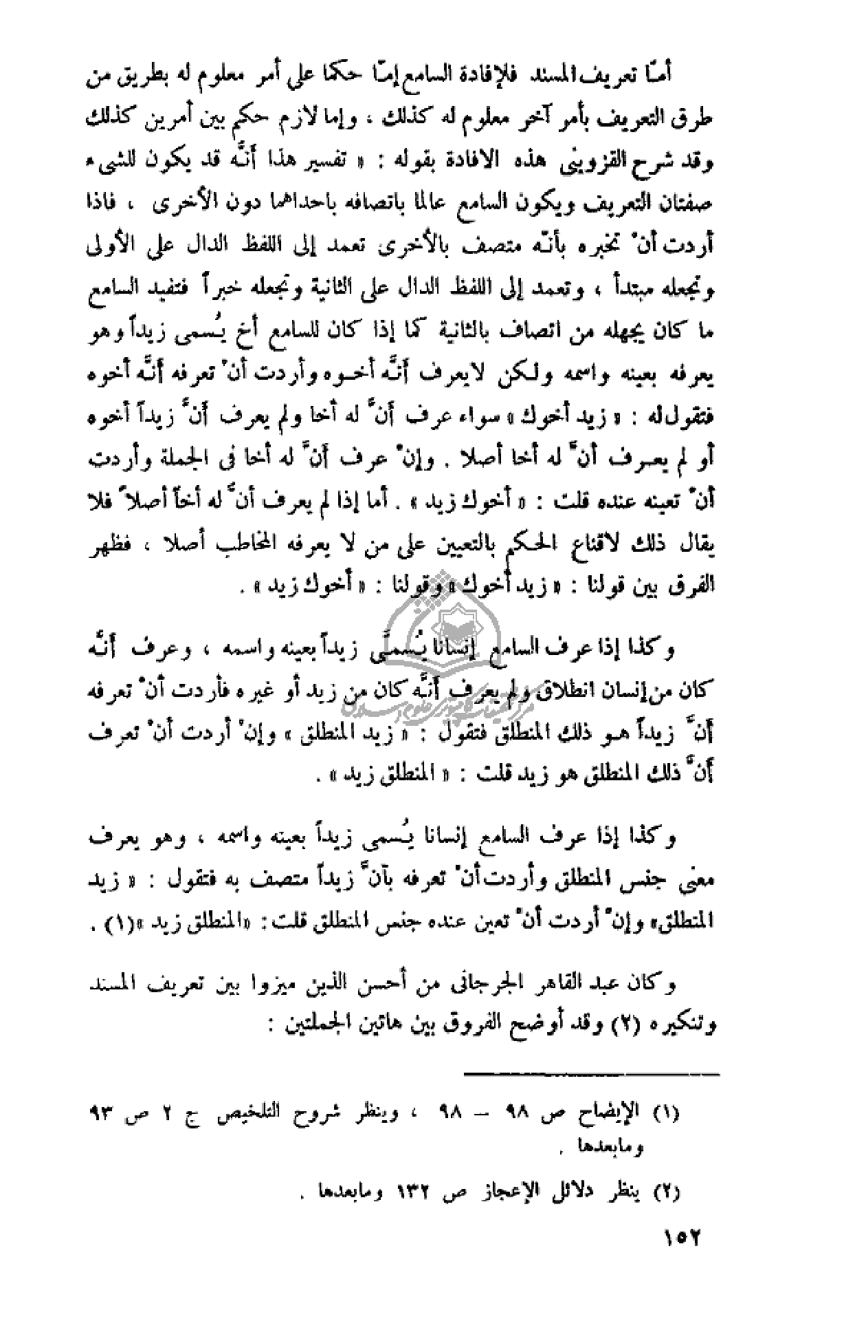 وكان عبد القاهر الجرجانى من أحسن الذين ميزوا بين تعريف المسند وتنكيره (¬2) وقد أوضح الفروق بين هاتين الجملتين: