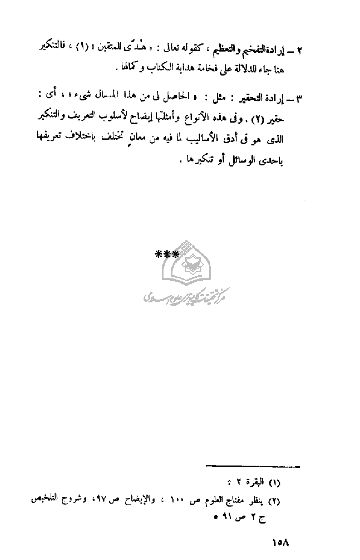 (¬2) ينظر مفتاح العلوم ص 100، والإيضاح ص 97، وشروح التلخيص ج 2 ص 91.