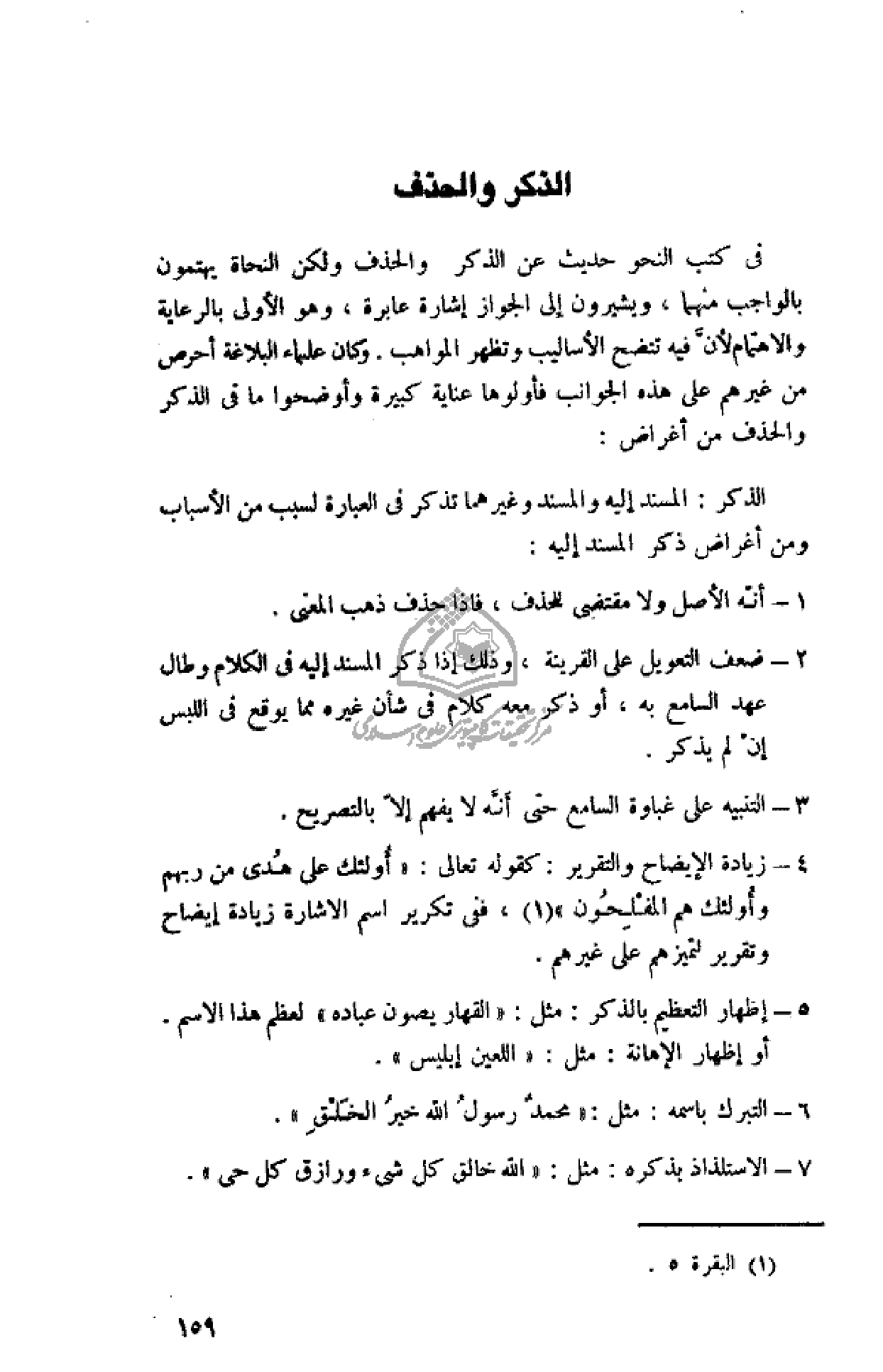 فى كتب النحو حديث عن الذكر والحذف ولكن النحاة يهتمون بالواجب منهما، ويشيرون إلى الجواز إشارة عابرة، وهو الأولى بالرعاية والاهتمام لأنّ فيه تتضح الأساليب وتظهر المواهب. وكان علماء البلاغة أحرص من