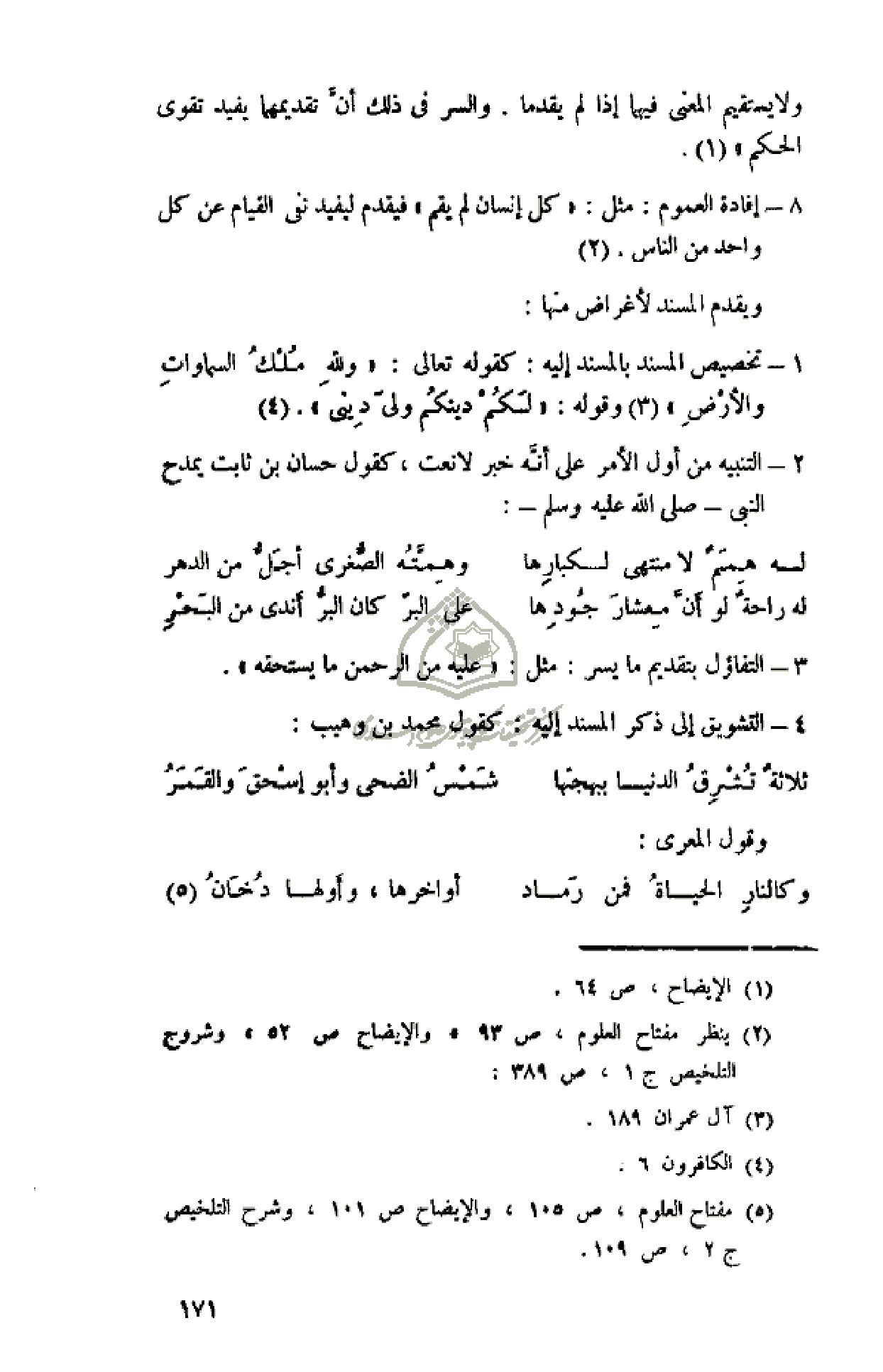 (¬5) مفتاح العلوم، ص 105، والإيضاح ص 101، وشرح التلخيص ج 2، ص 109.