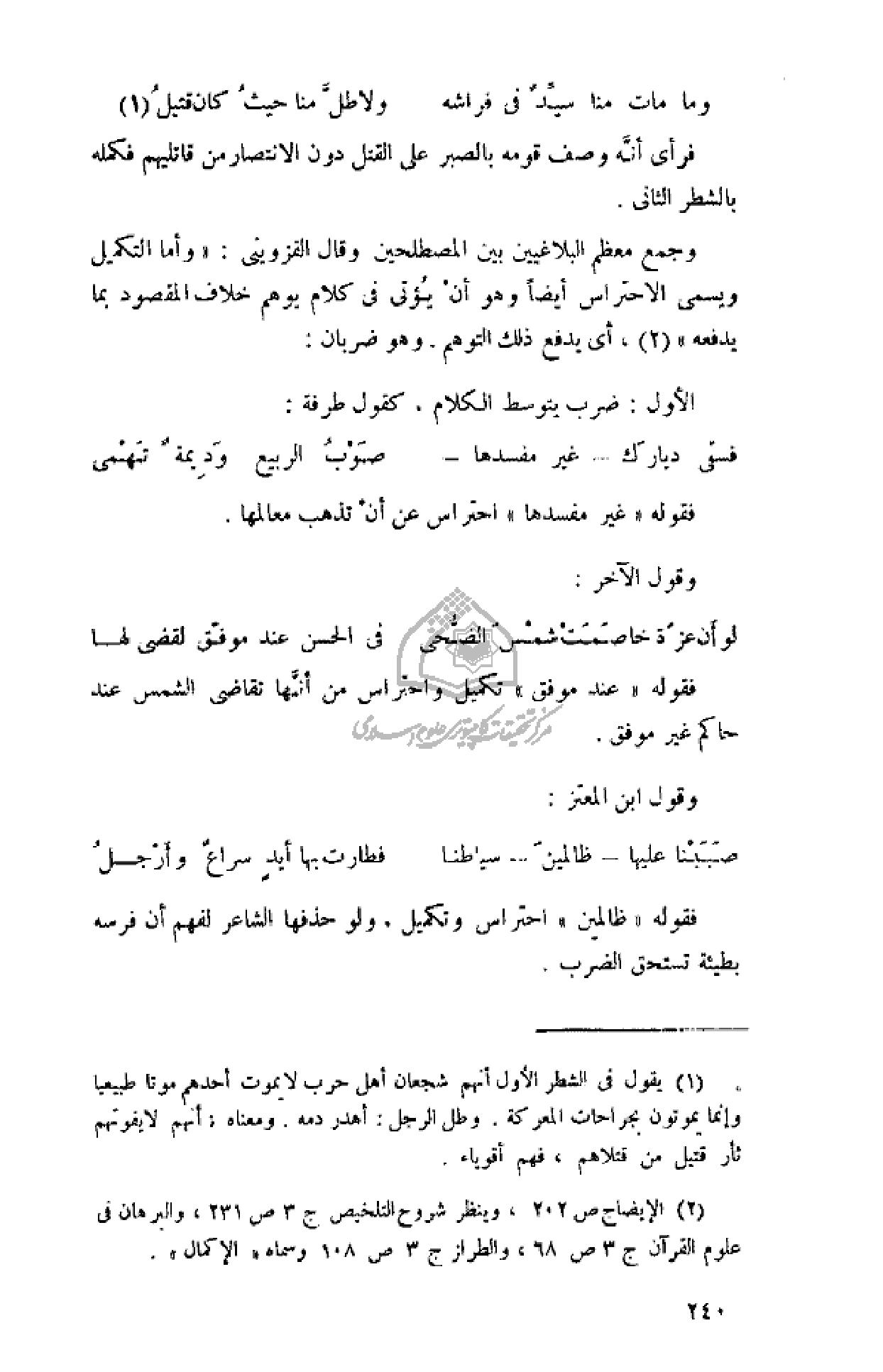(¬2) الإيضاح ص 202، وينظر شروح التلخيص ج 3 ص 231، والبرهان فى علوم القرآن ج 3 ص 68، والطراز ج 3 ص 108 وسماه «الإكمال».
