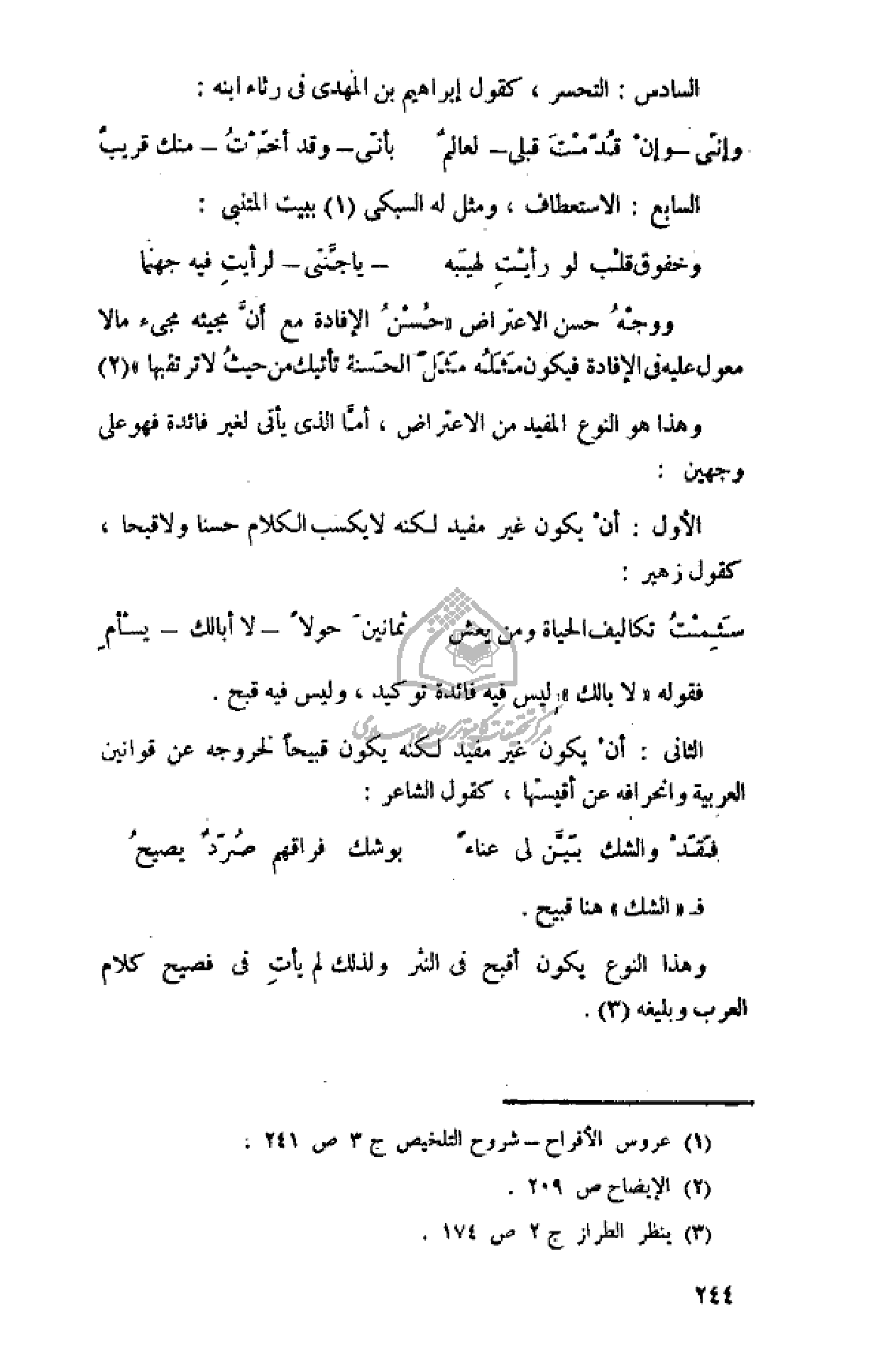 (¬1) عروس الأفراح- شروح التلخيص ج 3 ص 241.