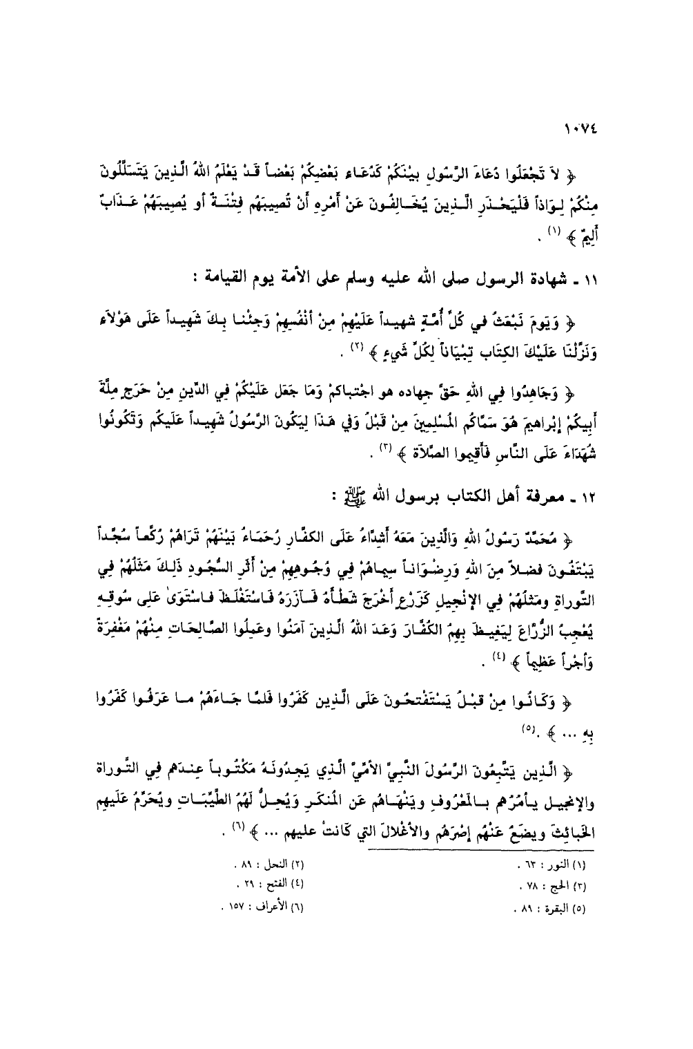 11 - شهادة الرسول صلى الله عليه وسلم على الأمة يوم القيامة:
