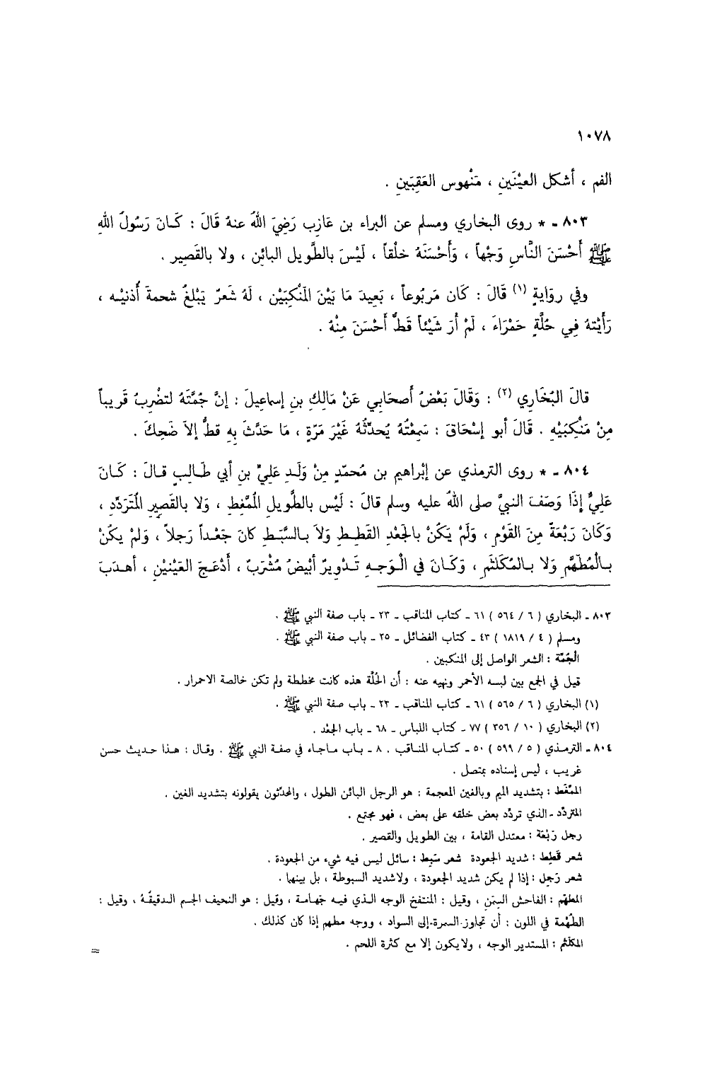 803 - البخاري (6/ 564) 61 - كتاب المناقب - 23 - باب صفة النبي صلى الله عليه وسلم.