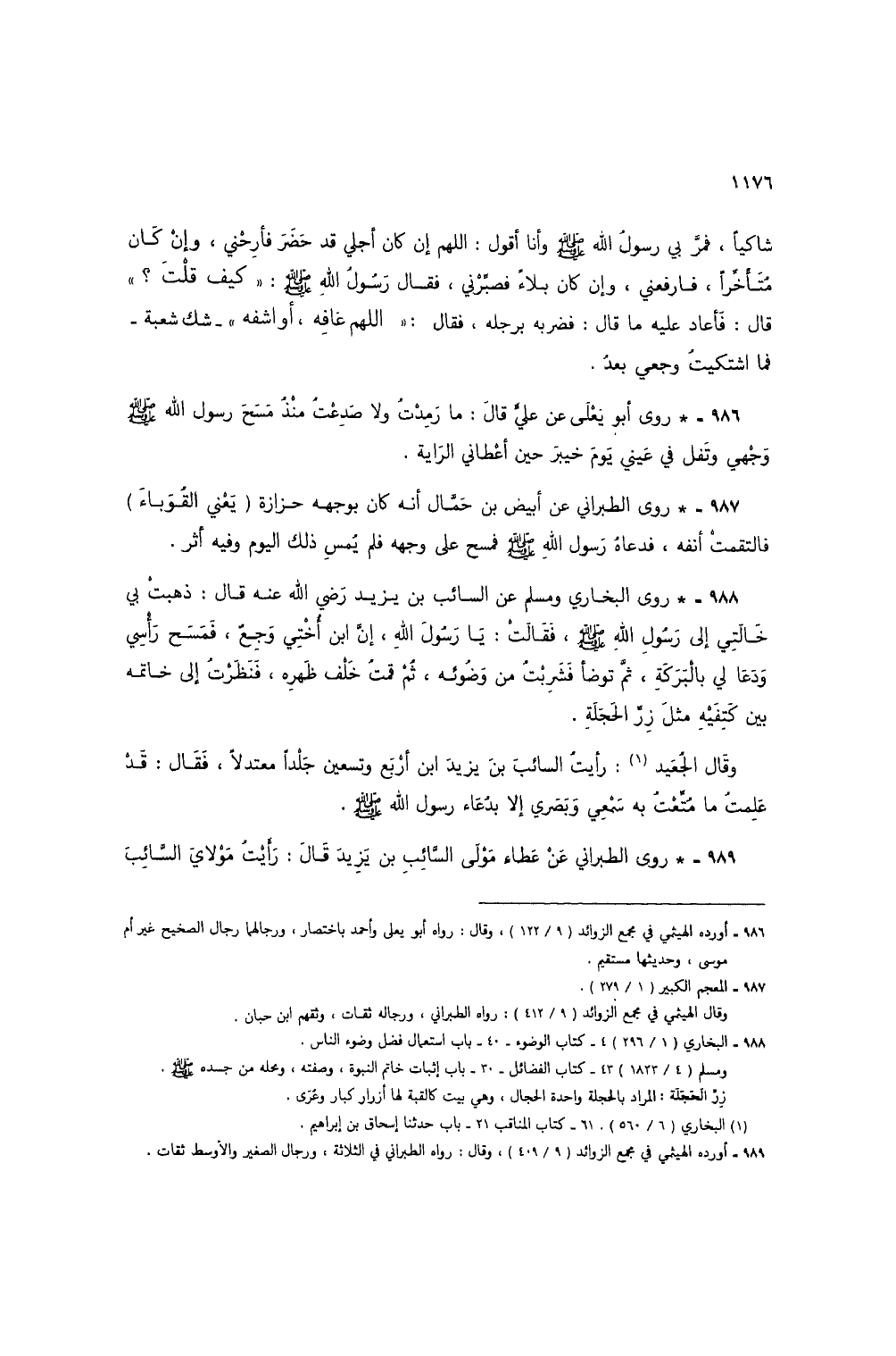 989 - * روى الطبراني عن عطاء مولى السائب بن يزيد قال: رأيتُ مولاي السائب