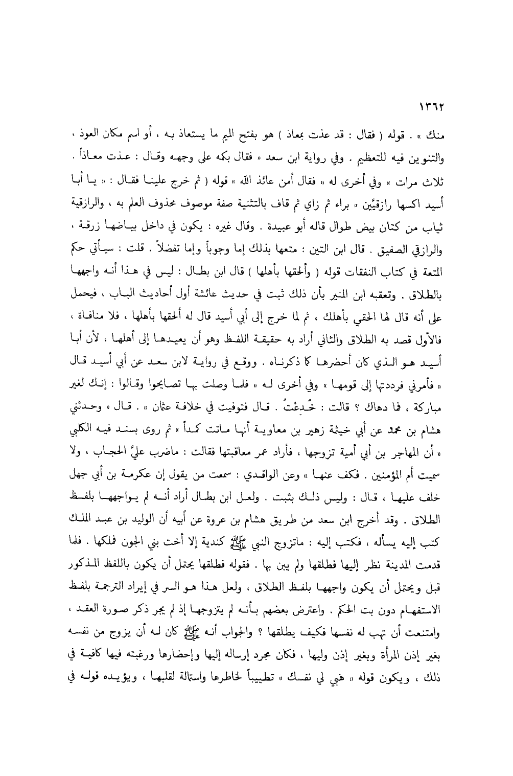 منك". قوله؛ فقال: قد عذت بمعاذ) هو بفتح الميم ما يستعاذ به، أو اسم مكان العوذ، والتنوين فيه للتعظيم. وفي رواية ابن سعد "فقال بكمه على وجهه وقال: عذت معاذاً. ثلاث مرات" وفي أخرى له "فقال أمن عائذ الله" قوله (ثم خرج علينا فقال: "يا أبا أٍيد اكسها رازقيين" براء ثم زاي ثم قاف بالتثنية صفة موصوف محذوف العلم به، والرازقية ثياب من كتان بيض طوال قاله أبو عبيدة. وقال غيره: يكون في داخل بياضها زرقة، والرازقي الصفيق. قال ابن التين: متعها بذلك إما وجوباً وإما تفضلاً. قلت: سيأتي حكم المتعة في كتاب النفقات قوله (وألحقها بأهلا) قال ابن بطال: ليس في هذا أنه واجهها بالطلاق. وتعقبه ابن المنير بأن ذلك ثبت في حديث عائشة أول أحاديث الباب، فيحمل عل أنه قال لها الحقي بأهلك، ثم لما خرج إلى أبي أسيد قال له ألحقها بأهلها، فلا منافاة، فالأول قصد به الطلاق والثاني أراد به حقيقة اللفظ وهو أن يعيدها إلى أهلها، لأن أبا أسيد هو الذي كان أحضرها كما ذكرناه. ووقع في رواية لابن سعد عن أبي أسيد قال "فأمرني فرددتها إلى قومها" وفي أخرى له "فلما وصلت بها تصايحوا وقالوا: إنك لغير مباركة، فما دهاك؟ قالت: خُدعتُ. قال فتوفيت في خلافة عثمان". قال "وحدثني هشام بن محمد عن أبي خيثمة زهير بن معاوية أنها ماتت كمداً" ثم روى بسند فيه الكلبي "أن المهاجر بن أبي أمية تزوجها، فأراد عمر معاقبتها فقالت: ما ضرب عليَّ الحجاب، ولا سميت أم المؤمنين. فكف عنها" وعن الواقدي: سمعت من يقول عن عكرمة بن أبي جهل خلف عليها، قال: وليس ذلك يثبت. ولعل ابن بطال أراد أنه لم يواجهها بلفظ الطلاق. وقد أخرج ابن سعد من طريق هشام بن عروة عن أبيه أن الوليد بن عبد الملك كتب إيه يسأله، فكتب إليه: ما تزو النبي صلى الله عليه وسلم كندية إلا أخت بني الجون فملكها. فلما قدمت المدينة نظر إليها فطلقها ولم يبن بها. فقوله فطلقها يحتمل أن يكون باللفظ المذكور قبل ويحتمل أن يكون واجهها بلفظ الطلاق، ولعل هذا هو السر في إيراد الترجمة بلفظ الاستفهام دون بت الحكم. واعترض بعضهم بأنه لم يتزوجها إذ لم يجر ذكر صورة العقد، وامتنعت أن تهب له نفسها فكيف يطلقها؟ والجواب أنه صلى الله عليه وسلم كان له أن يزوج من نفسه بغير إذن المرة وبغير إذن وليها، فكان مجرد إرساله إليها وإحضارها ورغبته فيها كافية في ذلك، ويكون قوله "هي لي نفسك" تطييباً لخاطرها واستمالة لقلبها، ويؤيده قوله في