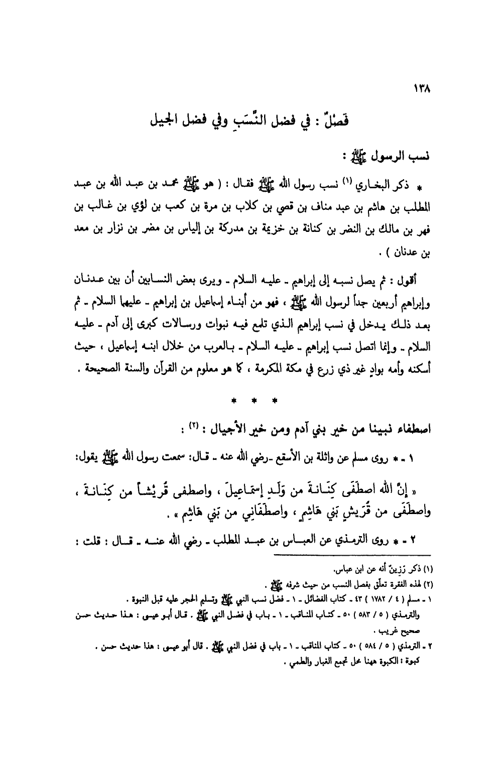 (2) لهذه الفقرة تعلق بفصل النسب من حيث شرفه صلى الله عليه وسلم.