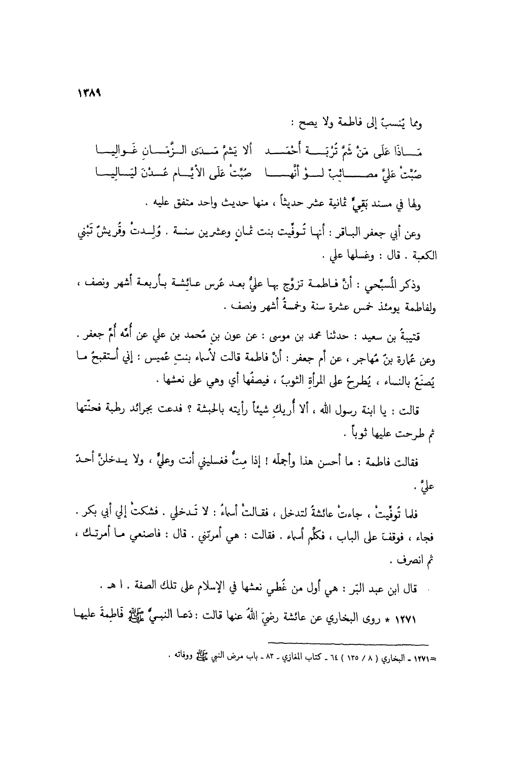 ومما يُنسبُ إلى فاطمة ولا يصح: