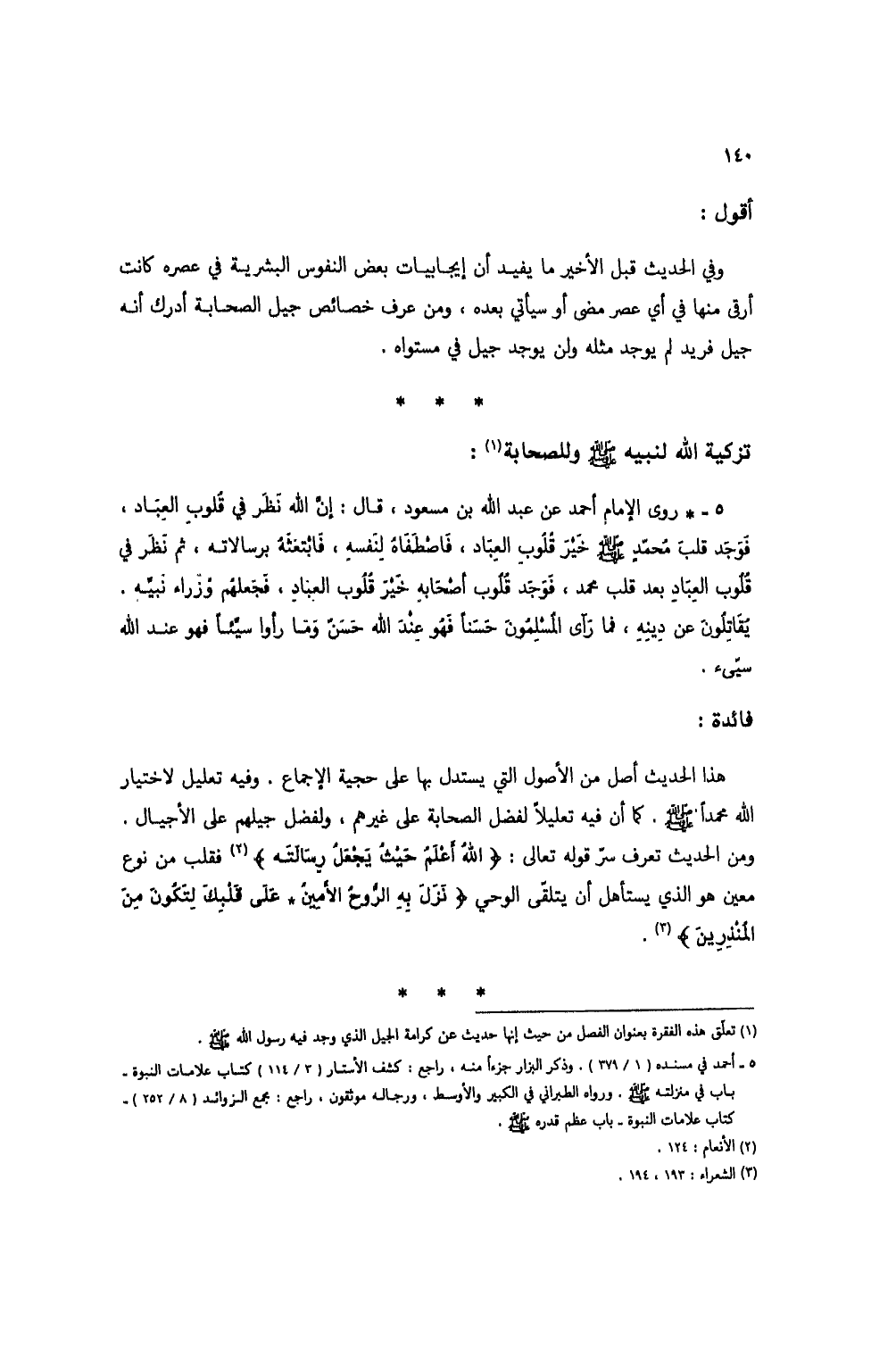 (1) تعلق هذه الفقرة بعنوان الفصل من حيث إنها حديث عن كرامة الجيل الذي وجد فيه رسول الله صلى الله عليه وسلم.