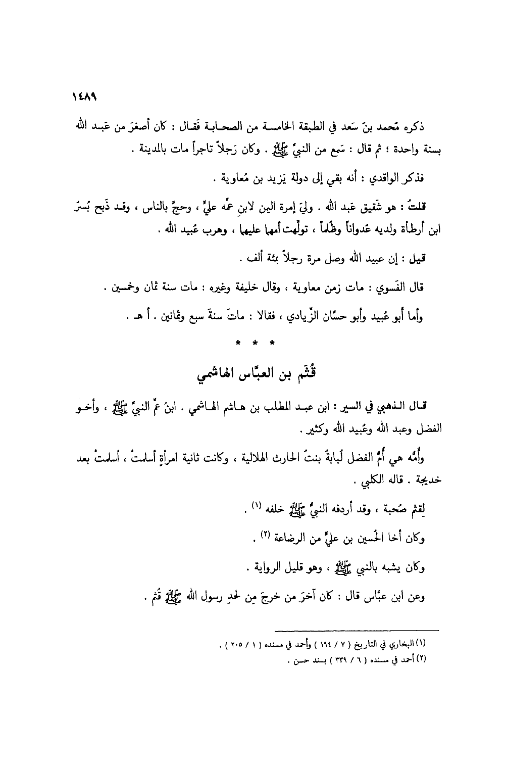 (1) البخاري في التاريخ (7/ 194) وأحمد في مسنده (1/ 305).