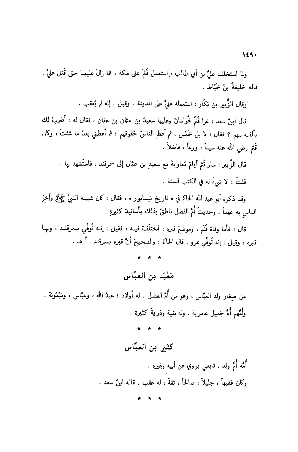 قال الزبير: سار قُثم أيام مُعاوية مع سعيد بن عثمان إلى سمرقند، فاستُشهد بها.