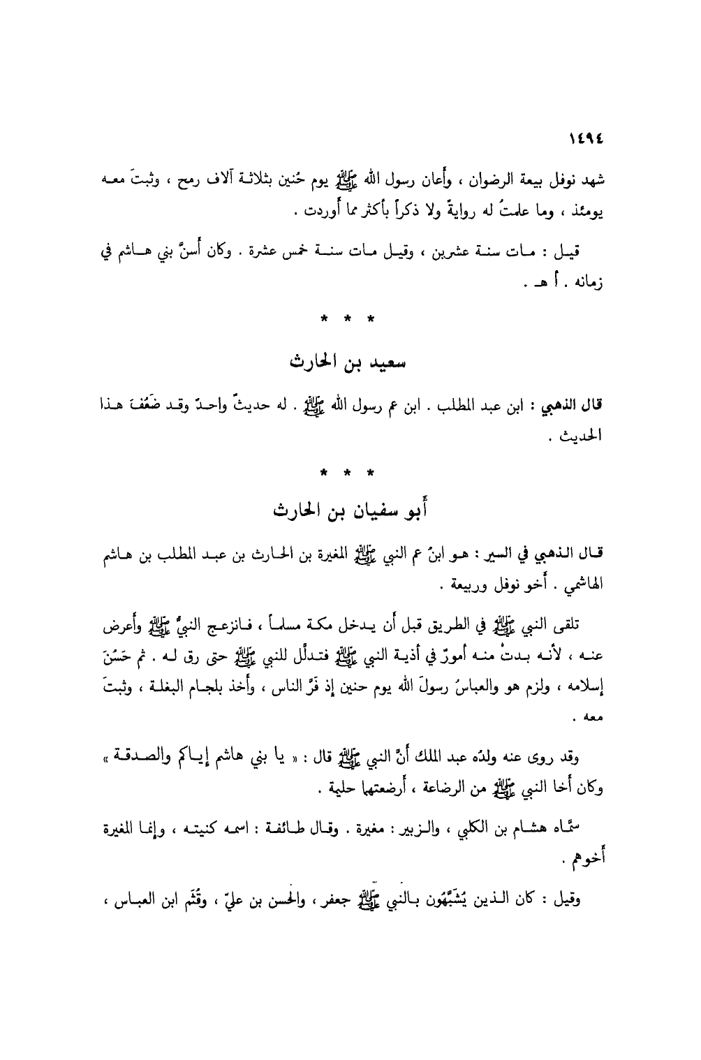 قال الذهبي في السير: هو ابن عم النبي صلى الله عليه وسلم المغيرة بن الحارث بن عبد المطلب بن هاشم الهاشمي. أخو نوفل وربيعة.