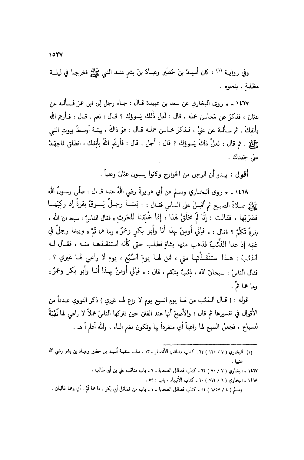 (1) البخاري (7/ 125) 63 - كتاب مناقب الأنصار -13 - باب منقبة أسيد بن حضير وعياد بن بشر رضي الله عنهما.