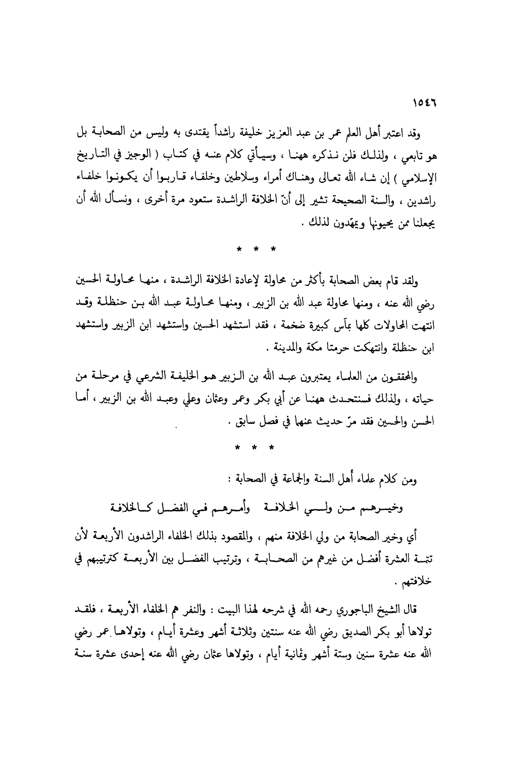 قال الشيخ الباجوري رحمه الله في شرحه لهذا البيت: والنفر هم الخلفاء الأربعة، فلقد تولاها أبو بكر الصديق رضي الله عنه سنتين وثلاثة أشهر وعشرة أيام، وتولاها عمر رضي الله عنه عشرة سنين وستة أشهر وثمانية أيام، وتولاها عثمان رضي الله عنه إحدى عشرة سنة