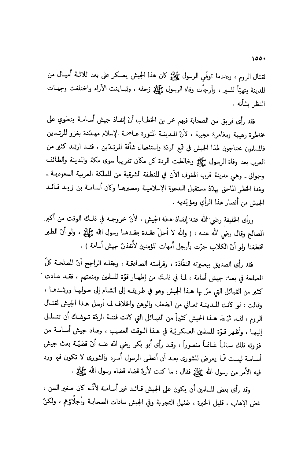لقتال الروم، وعندما توفي الرسول صلى الله عليه وسلم كان هذا الجيش يعسكر على بعد ثلاثة أميال من المدينة يتهيأ للسير، وأرجأت وفاة الرسول صلى الله عليه وسلم زحفه، وتباينت الآراء واختلفت وجهات النظر بشأنه.