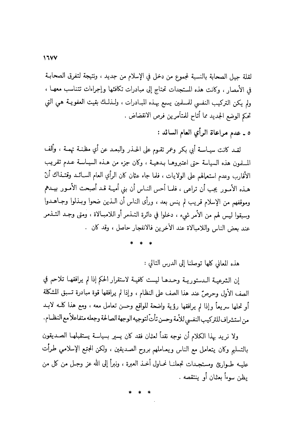 ولا نريد بهذا الكلام أن نوجه نقداً لعثمان فقد كان يسير بسياسة يستقبلها الصديقون بالتسليم وكان يتعامل مع الناس ويعاملهم بروح الصديقين، ولكن المجتمع الإسلامي طرأت عليه طوارئ ومستجدات تجعلها نحاول أخذ العبرة، ونبرأ إلى الله عز وجل من كل من يظن سوءاً بعثمان أو ينتقصه.