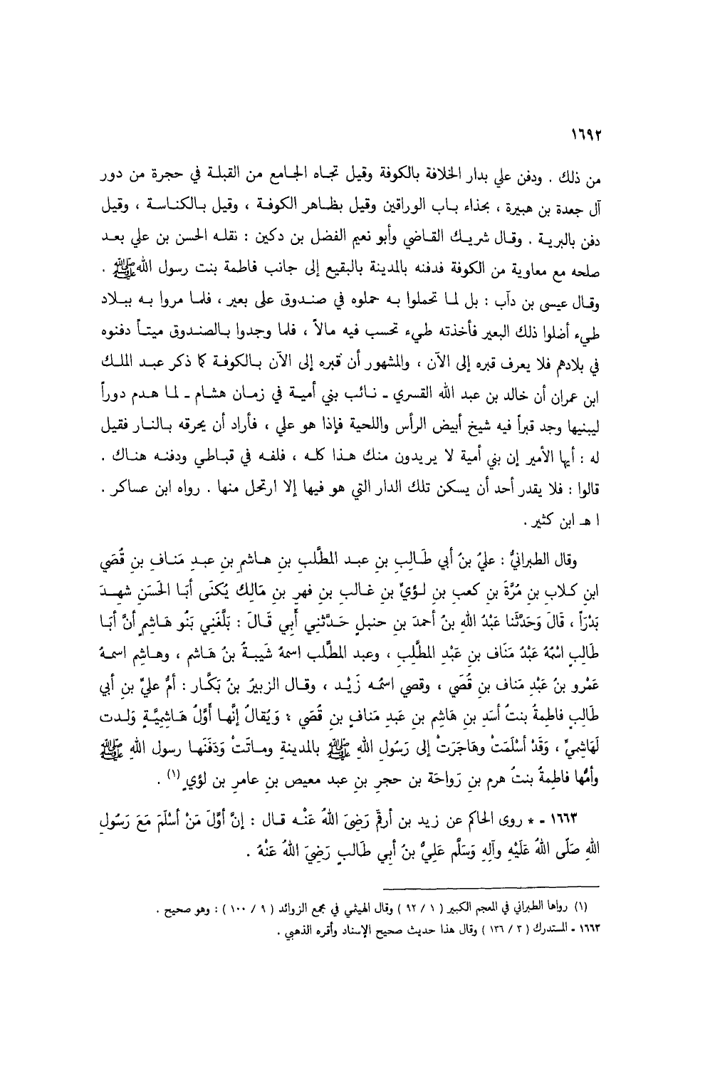 1663 - * روى الحاكم عن زيد بان أرقم رضي الله عنه قال: إن أول من أسلم مع رسول الله صلى الله عليه وآله وسلم علي بن أبي طالب رضي الله عنه.