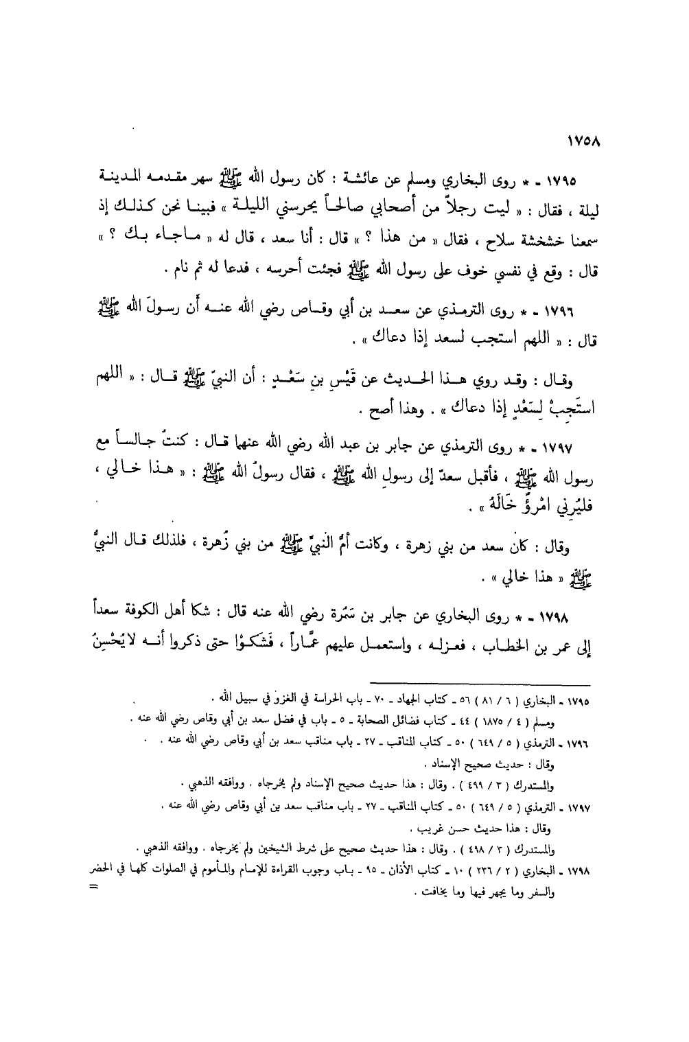 1797 - الترمذي (5/ 649) 50 - كتاب المناقب-27 - باب مناقب سعد بن أبي وقاص رضي الله عنه.