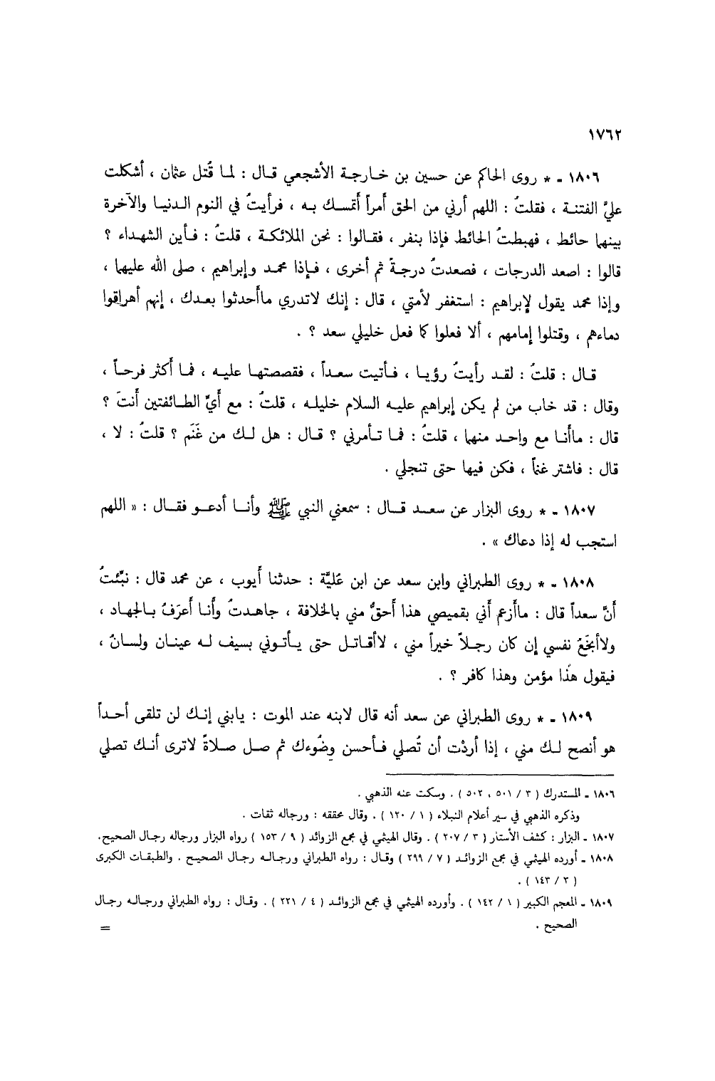 1808 - * روى الطبراني وابن سعد عن ابن عُليّة: حدثنا أَيوب، عن محمد قال: نبّتُ أَنّ سعداً قال: ما أَزعم أَني بقميصي هذا أَحقُ مني بالخلافة، جاهدتُ وأَنا أَعترفُ بالجهاد، ولا أبخَعُ نفسي إن كان رجلاً خيراً مني، لا أقاتل حتى يأتوني بسيف له عينان ولسانُ، فيقول هُذا مؤمن وهذا كافر؟.