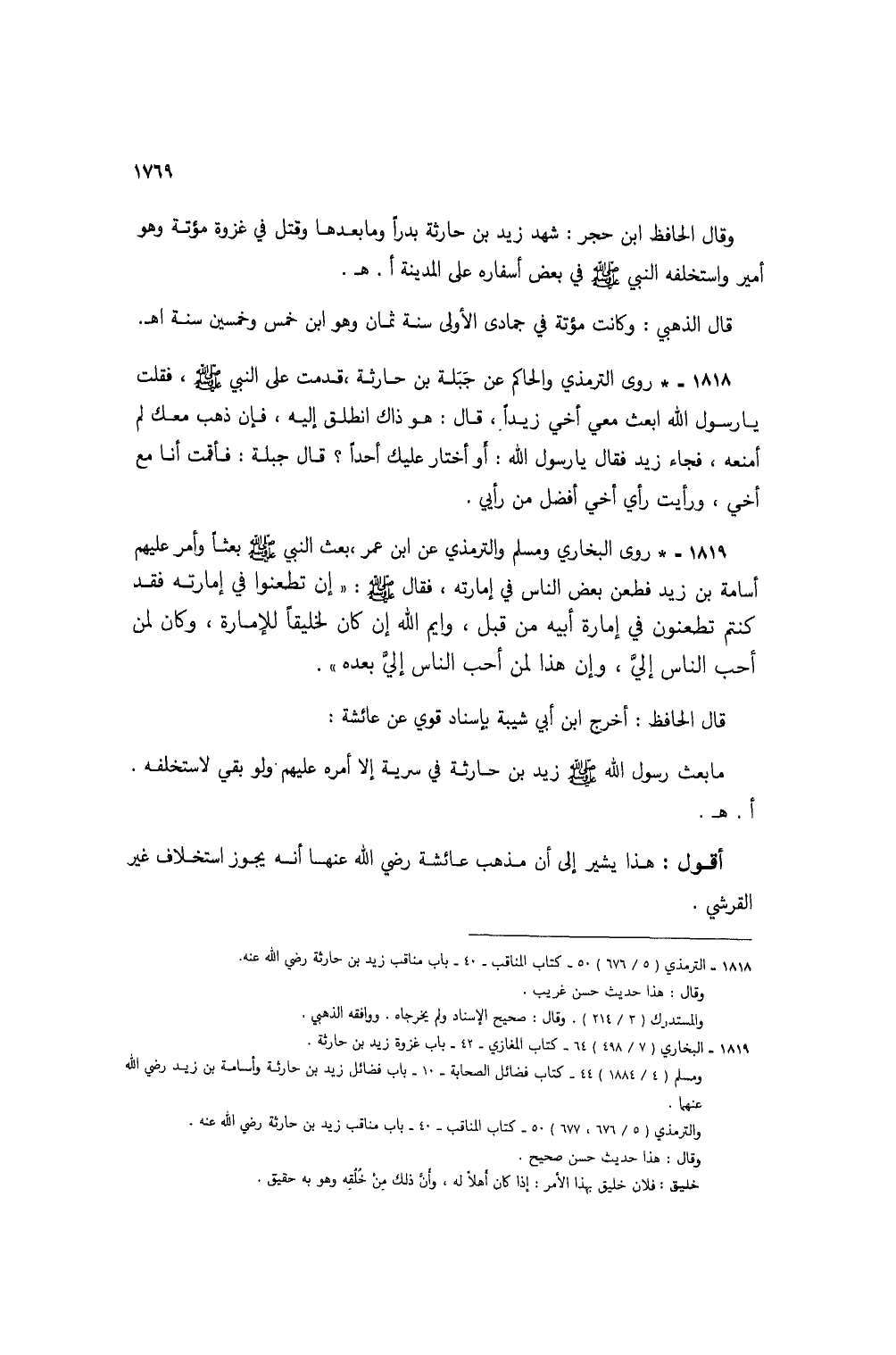 والترمذي (5/ 677، 676) 50 - كتاب المناقب- 40 - باب مناقب زيد بن حارثة رضي الله عنه.