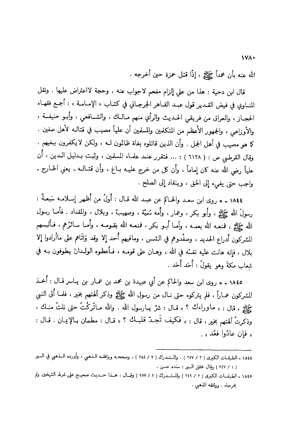 1844 - الطبقات الكبرى (3/ 247). والمستدرك (3/ 284)، وصححه ووافقه الذهبي، وأورده الذهبي في السير (1/ 347) وقال محقق السير: سنده حسن.