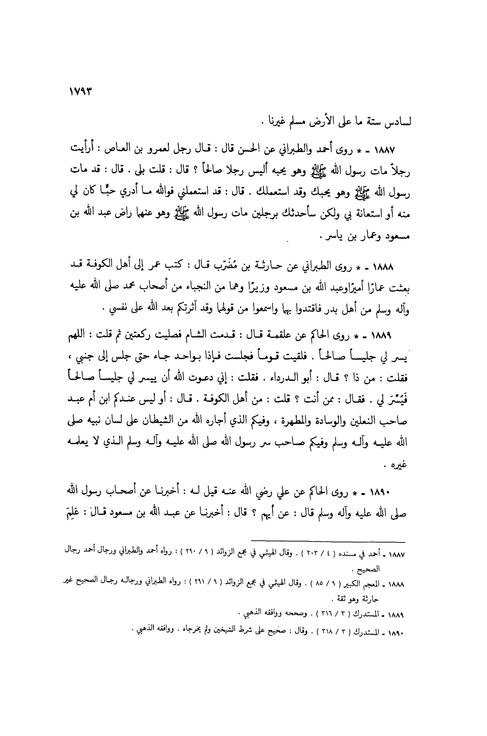1890 - * روى الحاكم عن علي رضي الله عنه قيل له: أخبرنا عن أصحاب رسول الله صلى الله عليه وآله وسلم قال: عن أيهم؟ قال: أخبرنا عن عبد الله بن مسعود قال: عَلِمَ