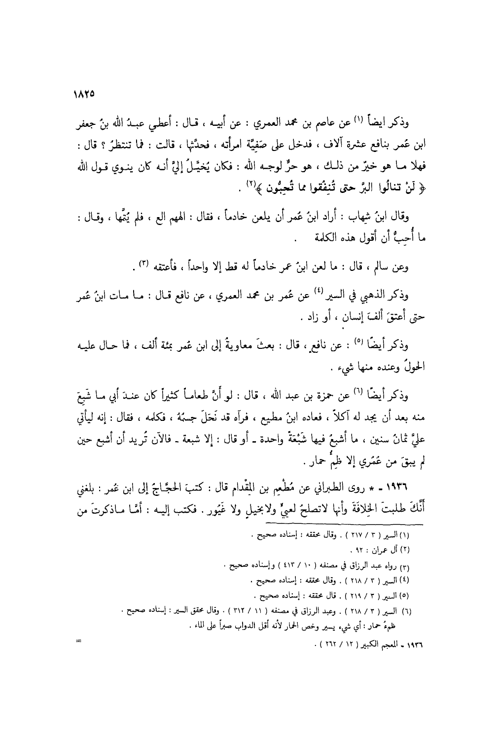 (6) السير (3/ 218). وعبد الرازق في مصنفه (11/ 312). وقال محقق السير: إسناده صحيح.