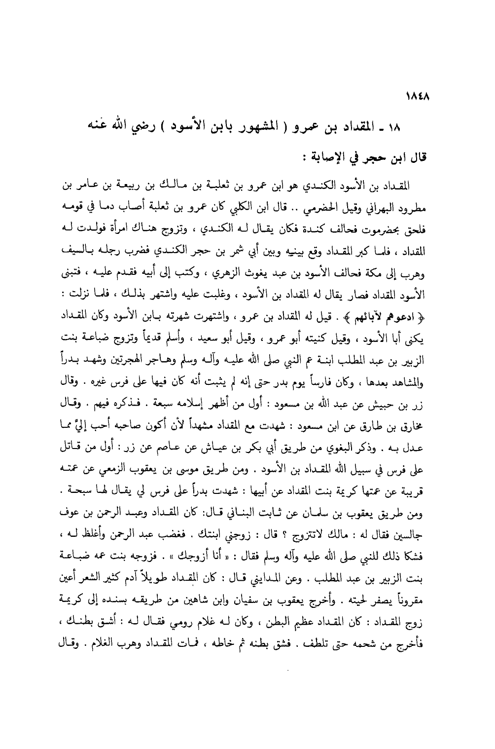 18 - المقداد بن عمرو (المشهور بابن الأسود) رضي الله عنه