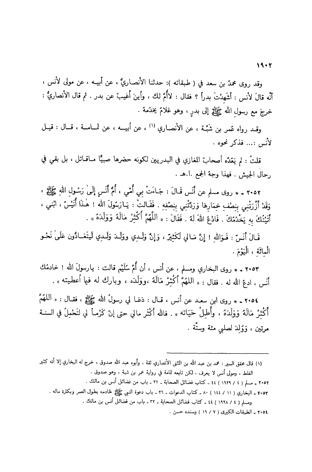 (1) قال محقق السير: محمد بن عبد الله بن المثني الأنصاري ثقة، وأبوه عبد الله صدوق، خرج له البخاري إلا أنه كثير الغلط، ومولى أنس لا يعرف، لكن تابعه ثمامة في رواية عمر بن شبة، وهو صدوق.