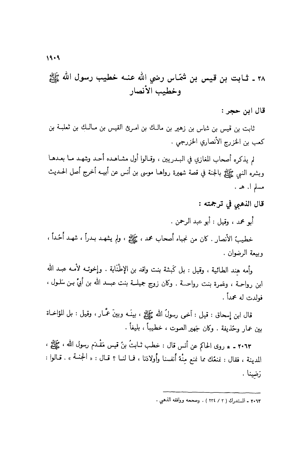 28 - ثابت بن قيس بن شماس رضي الله عنه خطيب رسول الله صلى الله عليه وسلم