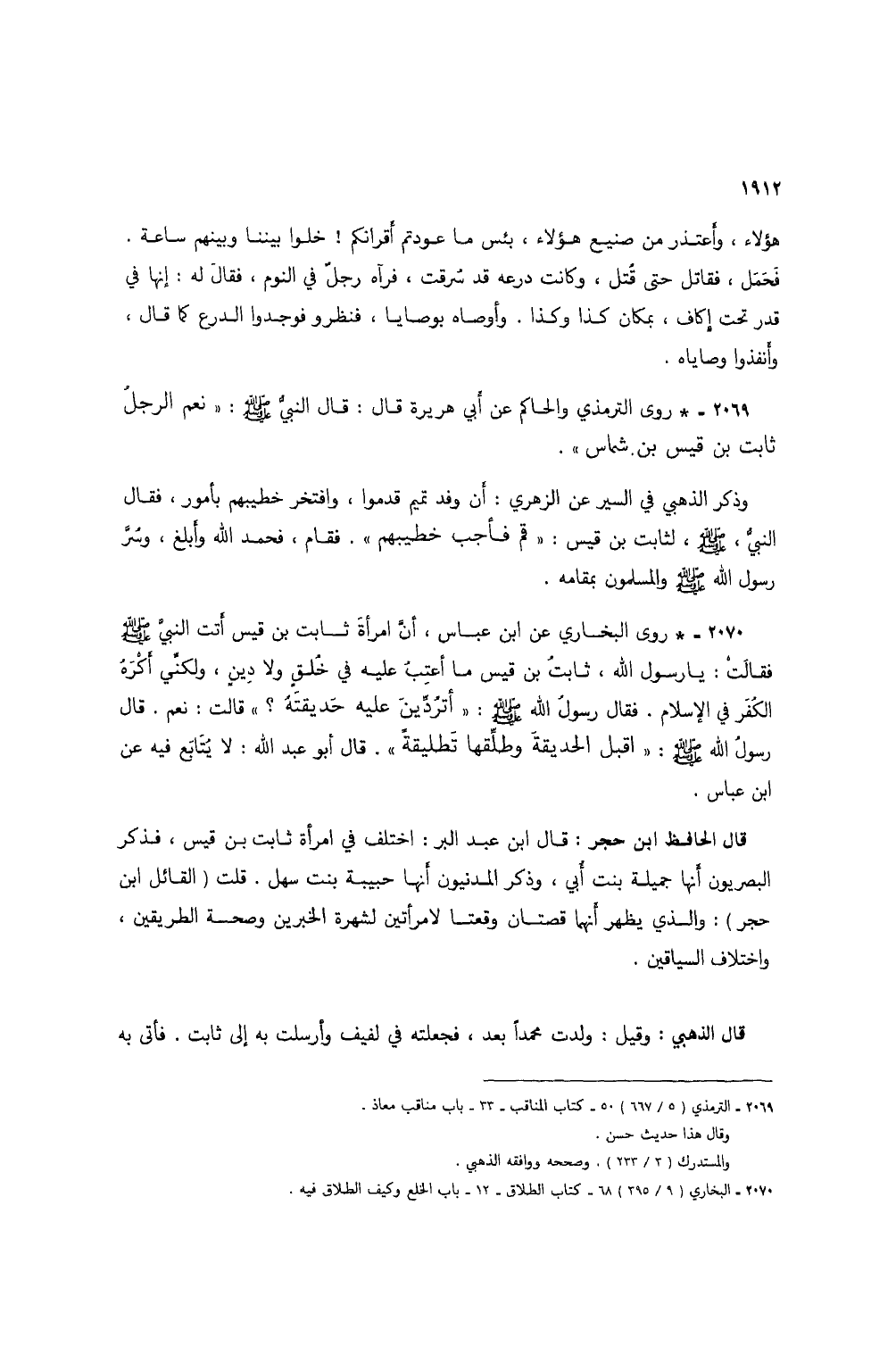 2069 - * روى الترمذي والحاكم عن أبي هريرة قال: قال النبي صلى الله عليه وسلم: "نعم الرجل ثابت بن قيس بن شماس".