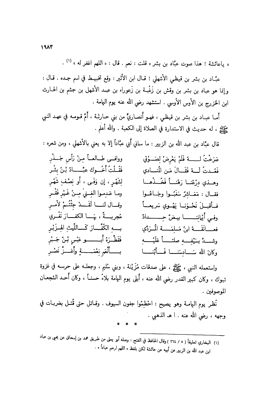 فعدت له فقال من المنادي ... فقلت أخوك عباد بن بشر