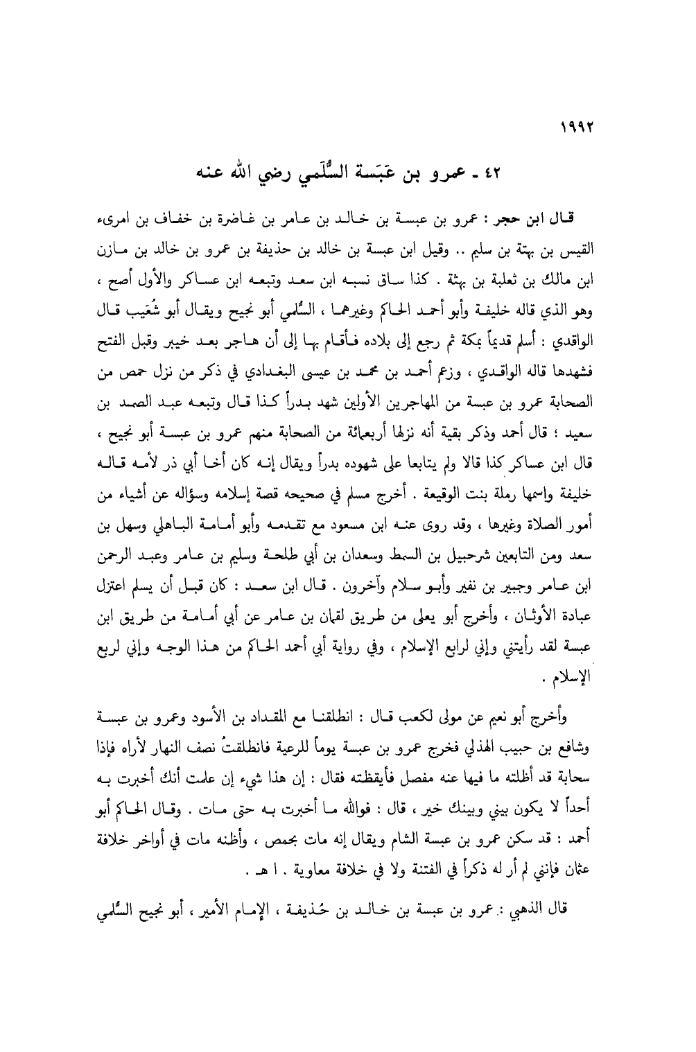 قال الذهبي: عمرو بن عبسة بن خالد بن حذيفة، الإمام الأمير، أبو نجيح السلمي