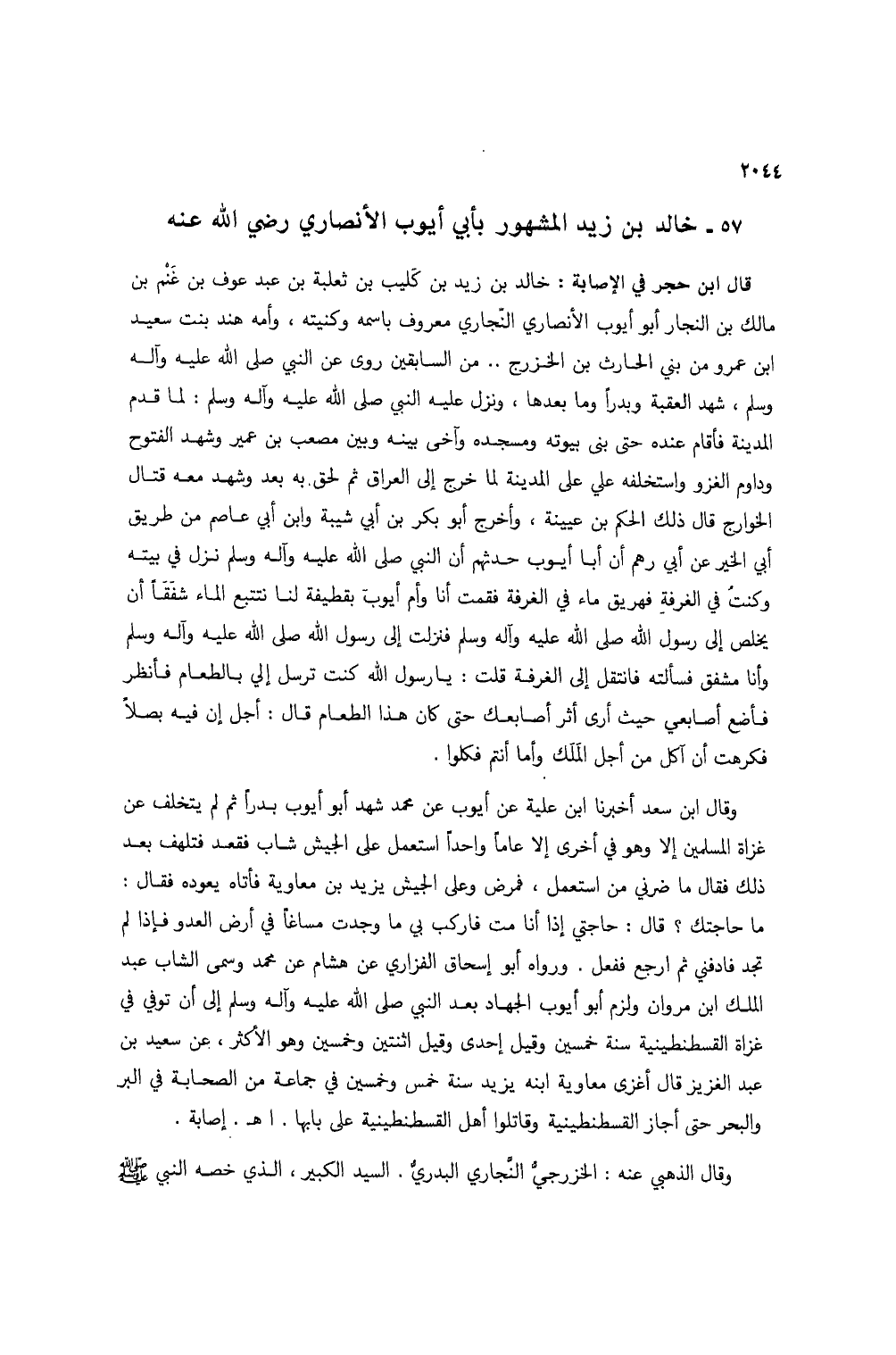 57 - خالد بن زيد المشهور بأبي أيوب الأنصاري رضي الله عنه