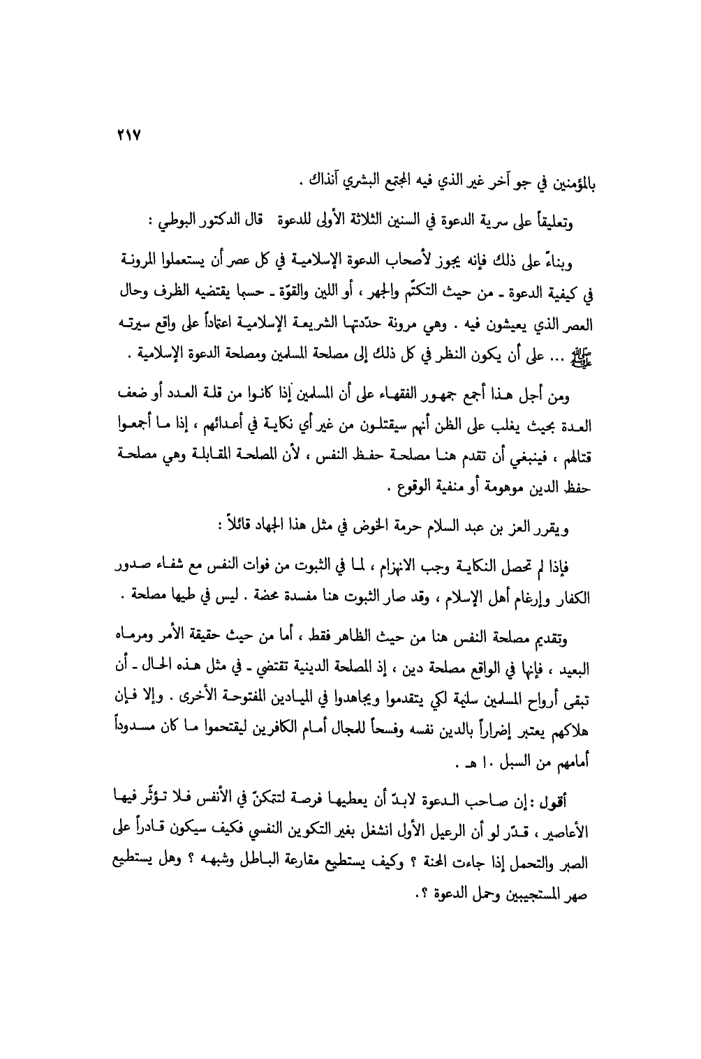وتعليقاً على سرية الدعوة في السنين الثلاثة الأولى للدعوة قال الدكتور البوطي: