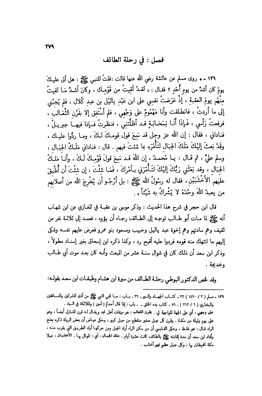 وقد لخص الدكتور البوطي رحلة الطائف من سيرة ابن هشام وطبقات ابن سعد بقوله: