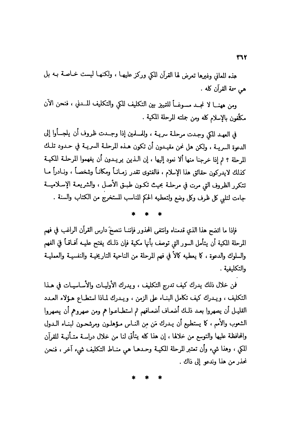ومن ههنا لا نجد مسوغاً للتمييز بين التكليف المكي والتكليف المدني، فنحن الآن مكلفون بالإسلام كله ومن جملته المرحلة المكية.