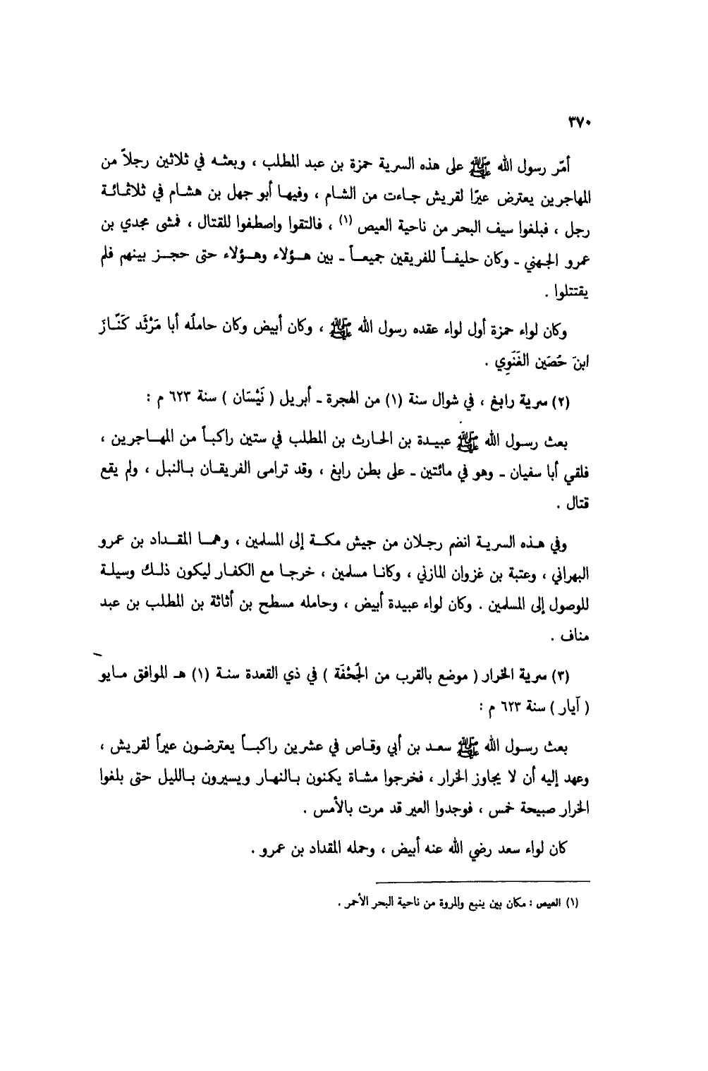 (2) سرية رابغ، في شوال سنة (1) من الهجرة - أبريل (نيسان) سنة 623 م: