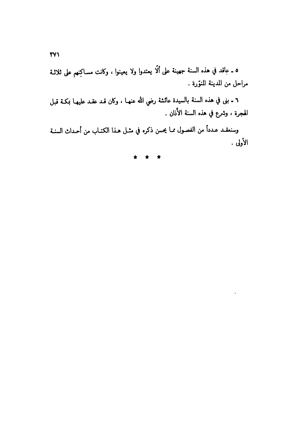 وسنعقد عدداً من الفصول مماي حسن ذكره في مثل هذا الكتاب من أحداث السنة الأولى.