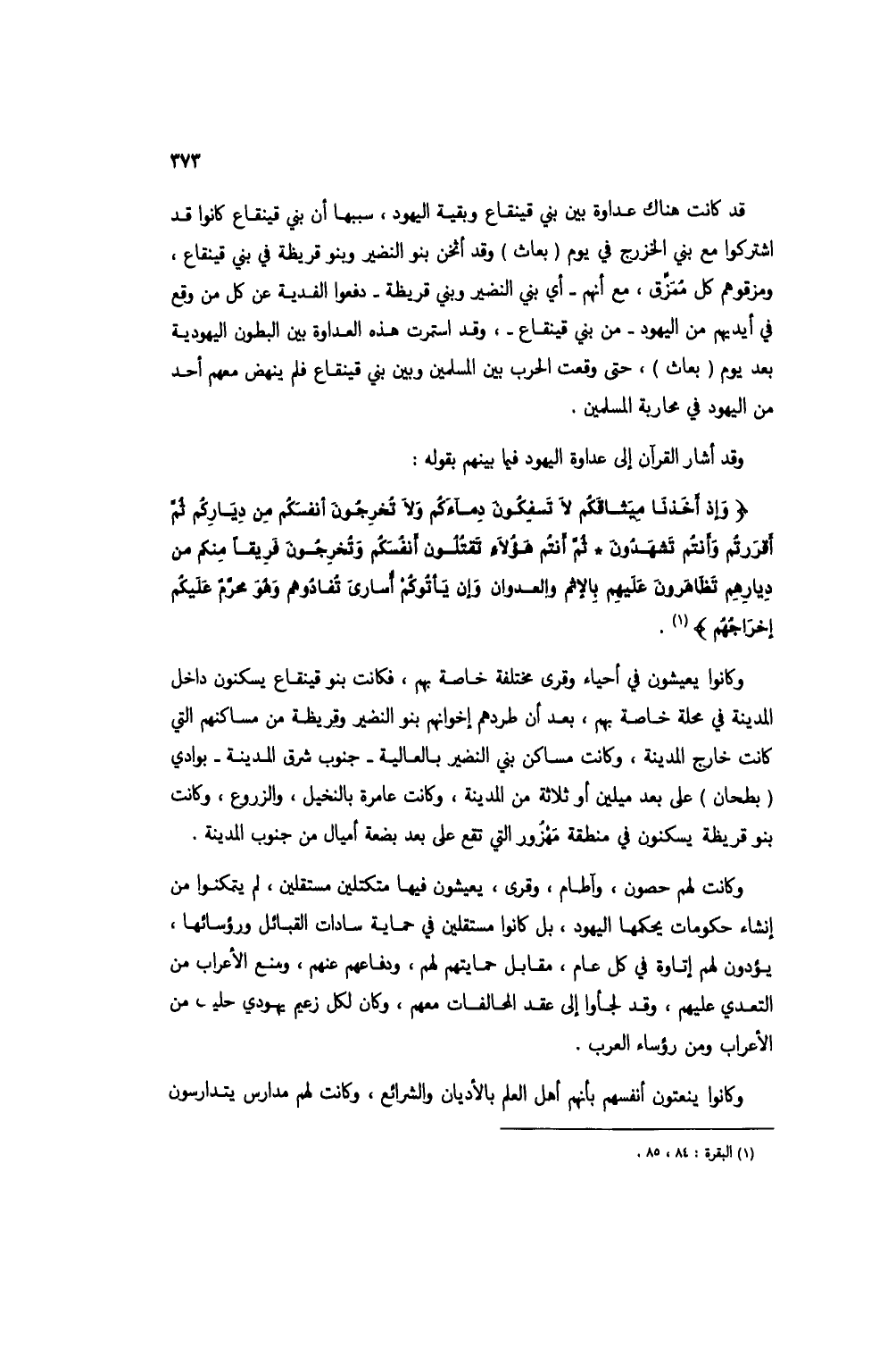 {وَإِذْ أَخَذْنَا مِيثَاقَكُمْ لَا تَسْفِكُونَ دِمَاءَكُمْ وَلَا تُخْرِجُونَ أَنْفُسَكُمْ مِنْ دِيَارِكُمْ ثُمَّ أَقْرَرْتُمْ وَأَنْتُمْ تَشْهَدُونَ * ثُمَّ أَنْتُمْ هَؤُلَاءِ تَقْتُلُونَ أَنْفُسَكُمْ وَتُخْرِجُونَ فَرِيقًا مِنْكُمْ مِنْ دِيَارِهِمْ تَظَاهَرُونَ عَلَيْهِمْ بِالْإِثْمِ وَالْعُدْوَانِ وَإِنْ يَأْتُوكُمْ أُسَارَى تُفَادُوهُمْ وَهُوَ مُحَرَّمٌ عَلَيْكُمْ إِخْرَاجُهُمْ} (1).