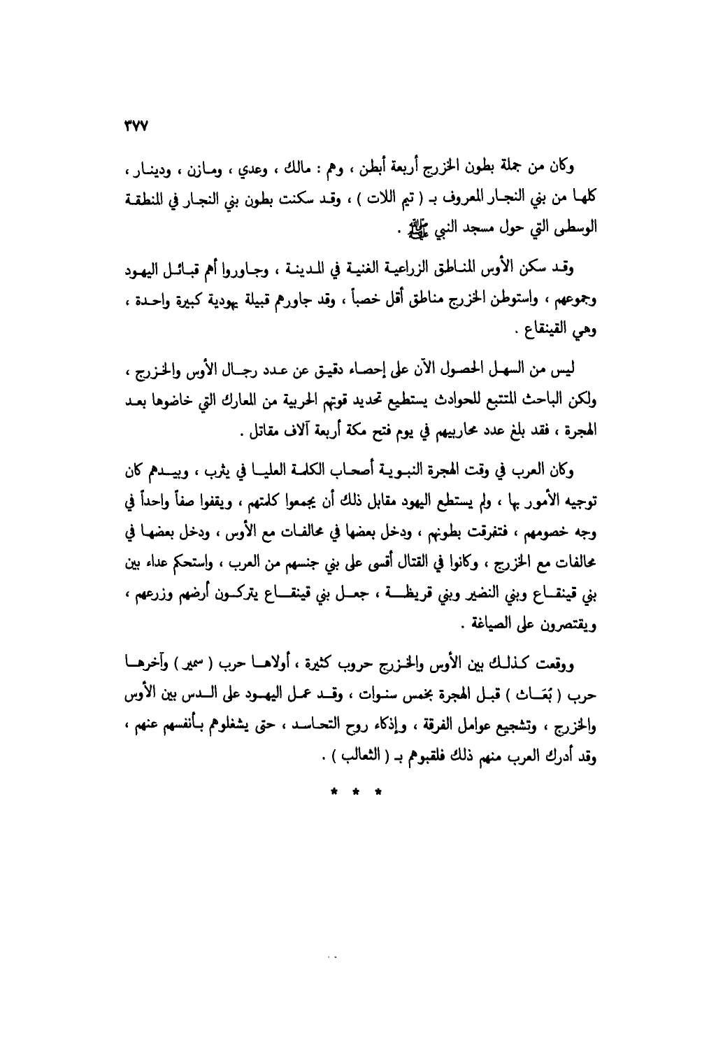 ووقعت كذلك بين الأوس والخزرج حروب كثيرة، أولاها حرب (سمير) وآخرها حرب (بُعاث) قبل الهجرة بخمس سنوات، وقد عمل اليهود على الدس بين الأوس والخزرج، وتشجيع عوامل الفرقة، وإذكاء روح التحاسد، حتى يشغلوهم بأنفسهم عنهم، وقد أدرك العرب منهم ذلك فلقبوهم بـ (الثعالب).