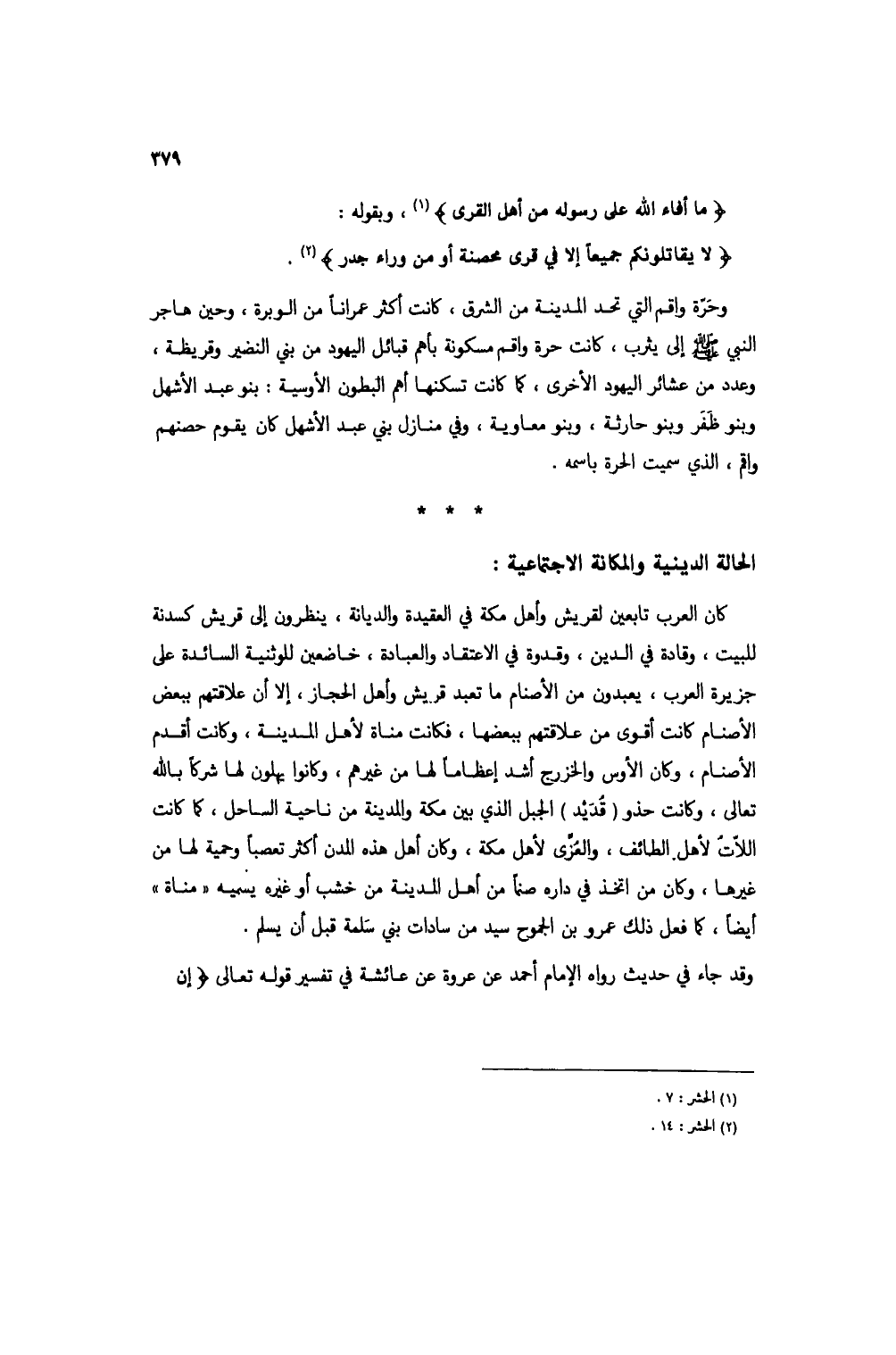 {مَا أَفَاءَ اللَّهُ عَلَى رَسُولِهِ مِنْ أَهْلِ الْقُرَى} (1)، وبقوله: {لَا يُقَاتِلُونَكُمْ جَمِيعًا إِلَّا فِي قُرًى مُحَصَّنَةٍ أَوْ مِنْ وَرَاءِ جُدُرٍ} (2).