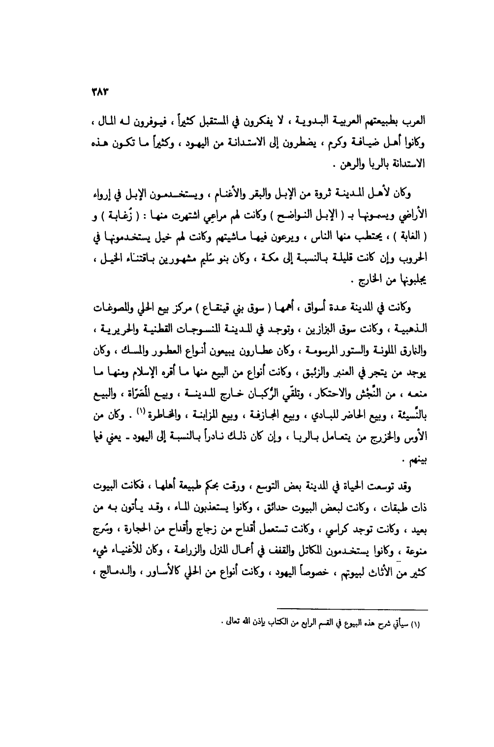 العرب بطبيعتهم العربية البدوية، لا يفكرون في المستقبل كثيراً، فيوفرون له المال، وكانوا أهل ضيافة وكرم، يضطرون إلى الاستدانة من اليهود، وكثيراً ما تكون هذه الاستدانة بالربا والرهن.