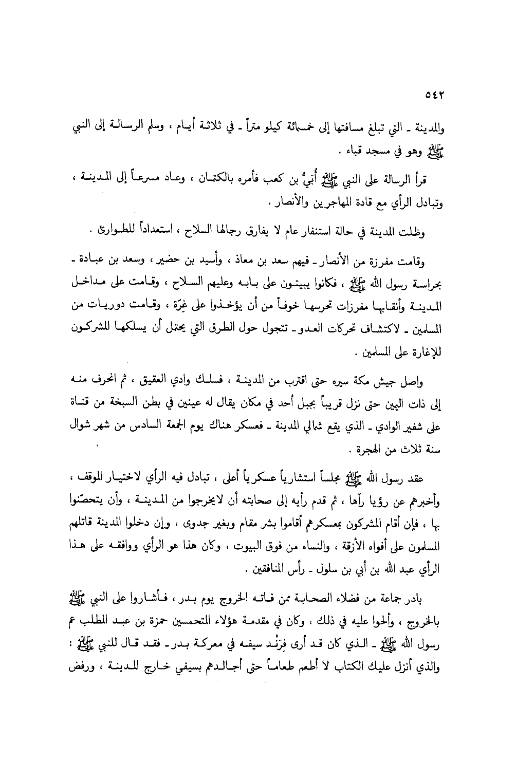 والمدينة - التي تبلغ مسافتها إلى خمسمائة كيلو متراً - في ثلاثة أيام، وسلم الرسالة إلى النبي صلى الله عليه وسلم وهو في مسجد قباء.