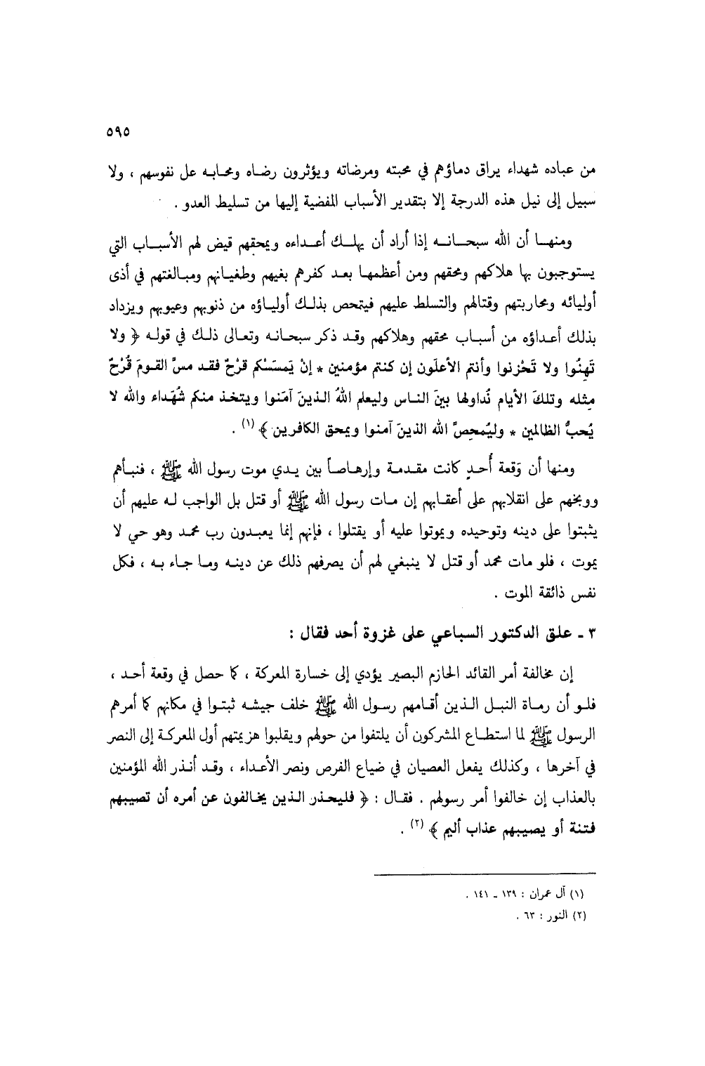3 - علق الدكتور السباعي على غزوة أحد فقال: