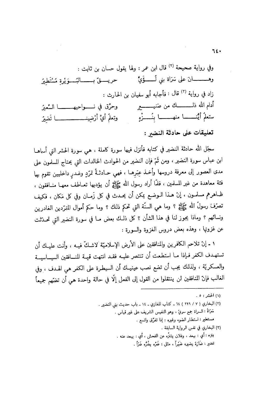 (1) البخاري (7/ 329) 64 - كتاب المغازي - 14 - باب حديث بني النضير.