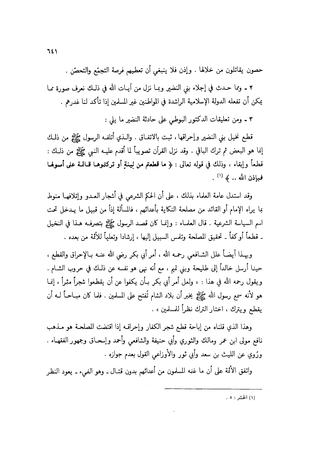 3 - ومن تعليقات الدكتور البوطي على حادثة النضير ما يلي: